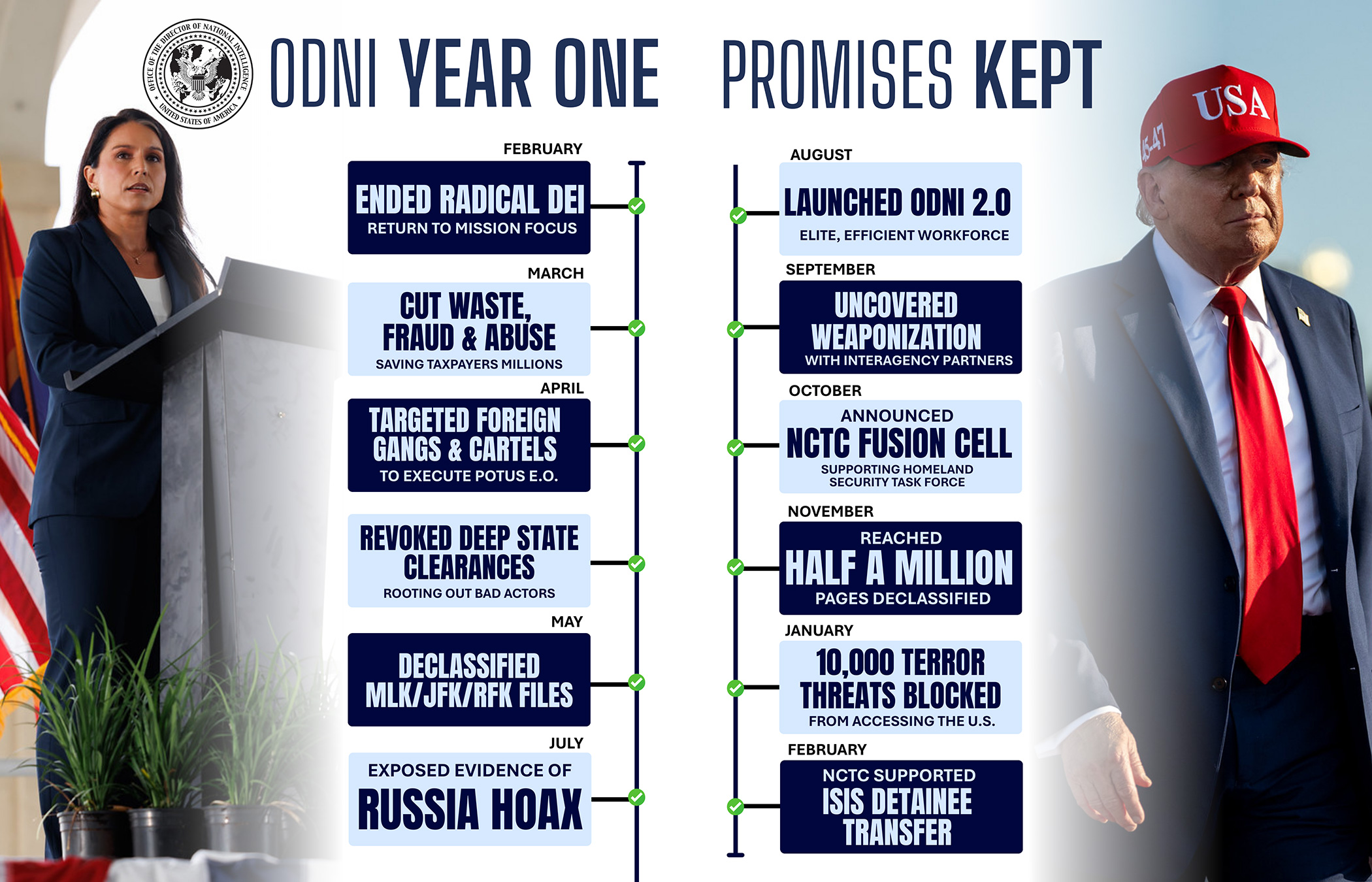 DNI Gabbard ended radical DEI policies and targeted waste, fraud, and abuse, saving millions in taxpayer dollars.